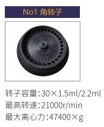 No1 | 角轉子 | 30x1.5ml/2.2 ml | 21000 r/min | 47400xg |