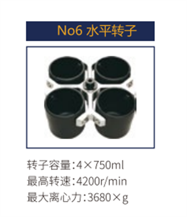 No6 | 水平轉(zhuǎn)子 | 4x750ml | 4200 r/min | 3680xg |